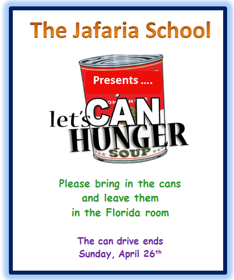 Archived News Food Drive March 18, 2015 Jafaria School Jafaria School will be collecting canned food donations through Sunday April 26th, 2015.